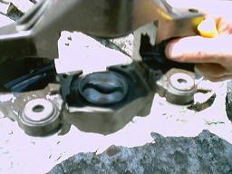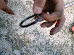 ピストンを取り外したら、シリンダー内のピストンシールを取り外します。 小さいマイナスドライバーのようなものを使えばいいんですが、シリンダー内を傷つけないように気をつけて下さい。 |
