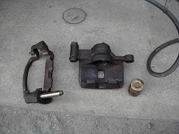 外したキャリパーです。 パッドは結構残っていたので今回はそのまま使いました。 |