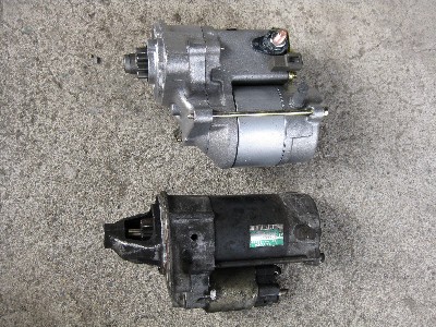 これがリビルド品のリダクション式セルモーター。 ピカピカに磨かれた外装を見た感じはまるで新品のようです。 部品番号は、28100-46100です。 ちなみに、プラネタリ式の方は、28100-46080です。 |