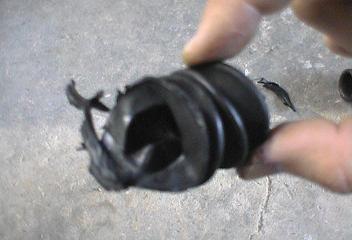 破れたブーツの拡大画像! もしかしたら、皆さんのクルマもこうなってるかも・・・(^_^;) |