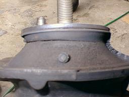 取り外したエンジンマウントの拡大写真です。 よく見るとヒビが入っています。 もう間もなく真っ二つに千切れるところだったのでしょう。(^_^;) ぎりぎりセーフでしたね! |