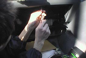 グローブボックスを取り外して、CPUを塞いでいるカバーを外します。