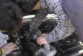 そして奥側のアクチュエーターのホースを外すためにエンジンルーム内へ・・・(^_^;)