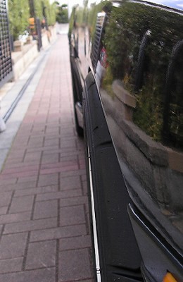 上から見た画像。 人によってはアウト!という場合もあるかもしれません。(^_^;) こう見るとどのあたりを叩き出したのかが分からないですよね。 そこがおいらの狙いだったりもするんですが。(^^) 知らない人が見たら純正フェンダーのままだと見間違えるかも(笑)。 ちなみにライナー(インナーフェンダー)はそのまま装着できないので上半分を切ることになります。 |