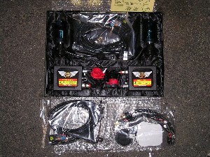 BJ UNIONのHIDはこんなパッケージに入ってきます。なんだか高級なものを買ってしまったという実感が沸いた瞬間でもありました。(^_^;) 中身は、HIDユニット本体に、バラスト、配線一式が入っています。配線をまとめるためのタイラップも大量に同梱されているので、事前に準備しておくのはニッパーとドライバーセットくらいでしょうか。 |