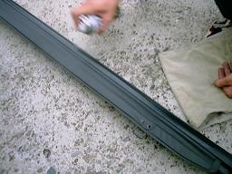 今度はハイマウントLEDを固定するトノカバーの加工です。加工といっても、両面テープで留めるだけですが(笑)。 両面テープの乗りがいいように、脱脂スプレーを吹きかけておきます。 しかし、サカイさんはいろんなものを持ってますね〜。 |