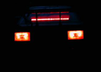 暗くなってからブレーキを踏んでみてみました。 まぁまぁですね〜。GTウィングがLEDの赤い光に照らされてボォ〜っと浮き上がって見えるのが良いのではないかと、一人で勝手に思い込んでいます(爆)。 最初はろど君と同じようにルーフにつけようかとも考えましたが、ちょうどGTウィングに隠れてしまい、全く意味を成さなくなってしまったのでこの位置にしたんですが、大満足ですね! バックミラーで見ると、赤い光が室内にも漏れるのですが、これも良いかなぁなんて思ってます(笑)。 満足度90%! |