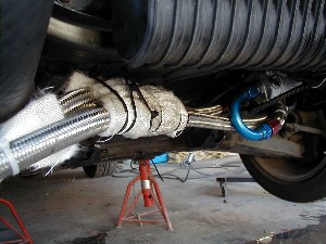 オイル漏れ等が無いことを確認したら、配管やサーモブロックをタイラップで固定し、バンパーを装着します。ステンメッシュホースにはオイルクーラーキット同梱のコルゲートチューブを巻きました。 ここの段階で実走して、再度オイル漏れのチェックを行ないました。 |