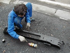 サンダーで削った後は、他と同様に切断箇所をシャーシブラックで塗装しました。 なお、ダクトの装着や塗装は時間の関係などもあってプロにお願いしました。 |