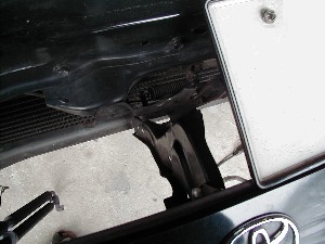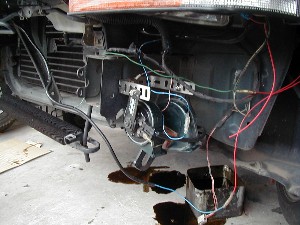 今回取り付けるトラスト製オイルクーラーの場合、ホーンステーが邪魔になりますので、説明書を参考にボディを加工することになります。車体正面向かって左側(運転席側)のホーンステーを切り落すだけです。 これを切り落としたら、サビ防止のためにシャシーブラック等を使って塗装しておきます。ちなみにホーンは車体正面向かって右側(助手席側)のリトラ下に移動しました。 フレームにサービスホールが開いているので、そこに汎用のステーを使ってホーンを固定します。配線も忘れずにやっておきます。 |
