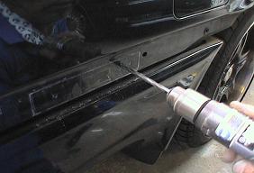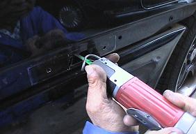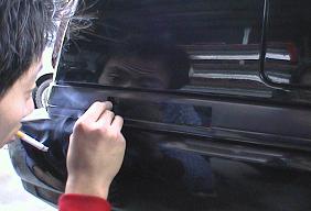 純正のモールと付け替えて、チョークで印をつけておきます。