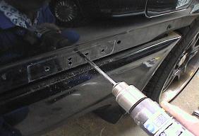 コーナーのやや内側をボルトで穴をあけると後の作業が楽になります。