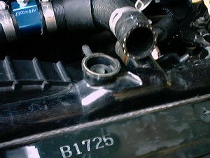 | ドレンからLLCを抜き、更にアッパーホースを外したところ。 |