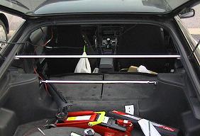 これがすぷらさん自作リアピラーバーです。 シルバーでキレイに塗装されていて、やる気をそそります(笑)。 寸法も現車合わせで作られているのでサイズはバッチリです。とても自作とは思えない出来栄えですね! |