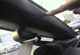 内装をめくりながらピラーバーを取り付けます。 強引に引っ張ると中の補強板がパキンと良い音をたてて割れます(笑)。 |