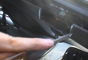 指で指している部分の内装をバッサリと切り落とします。 大体の位置決めが決まったら、ペンでラインを引いておいた方がずれないです。 |