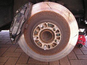 運転席側のローター。 PFCサーキットに交換してから何回かサーキットを走りましたが、ローターの削れ具合はそれほど変わっていないようなので、PFCがローターを酷使するといった噂はデマであるように思えます。 ユーザーがきちんと温度管理できなかったのが本当の原因でしょうね。(^_^;) |