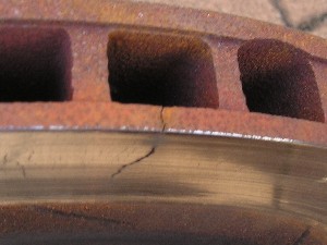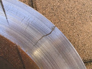 問題のクラック。 これだけでかいクラックがあるとさすがに振動がすごいです(爆)。 ちなみに、その周りにある小さなクラックはヒートクラックといってそれほど深刻な問題とはならないようです。 |