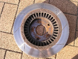 SCRの裏側。 冷却用のフィンが見えます。もちろん、純正ローターに比べたら当然性能は格段に上です。 おいら的には良いローターだと思います。 やはりコストパフォーマンスでいうなら、このSCRが一番良いのかもしれません。 それにR32キャリパーを導入する時点で高額なSCRプロを購入できる余裕なんてないですしね。(^_^;) |