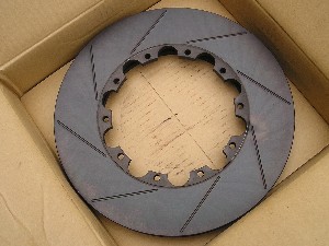 新品の補修用ローター。 これだけを見てみるとレーシングマシンみたいですね(笑)。 重さは一体型のローターよりも軽くなってますが、さすがにこのサイズになると重く感じられます。(^_^;) |