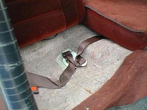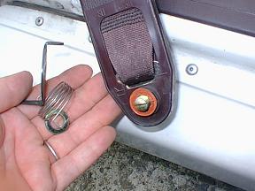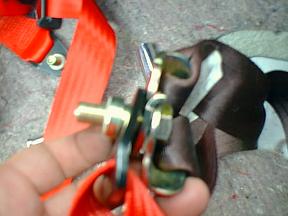| 運転席外側はベルトを戻すスプリングのような物が付いているので外します。 |