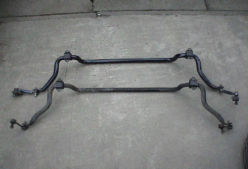 下が純正スタビ。 重さ的には純正のほうが軽いが細いですね。 |
