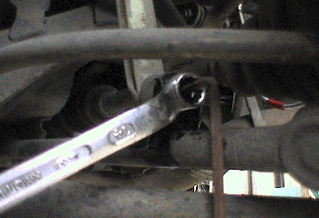 アンダーカバーをはずしたところ。 純正スタビは結構太いですが、車重があるため ロールを押さえられないようです。 |