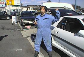 まずジャッキアップしてウマを掛けます。 結構ボルトがかたくて揺すったりするので、確実に固定しましょう! 隠し画像・・・オラ悟空!腹減っただ〜(笑) |
