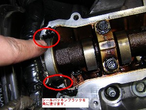 ヘッドかパーをまた組み付ける前に、シールパッキンブラックを角に塗布した様子です。 ちなみにこの画像の指の所に写っているホースですが、ヘッドカバーを外す前にビニールテープなどを巻くか新しいものに換えるかしてカスが落ちないようにしたほうがいいです。(古くてパリパリしてたのでゴミが入りそうでした。) あとは元通りに戻すだけです! いっぺんにやってしまったので大変でしたが、愛車がリフレッシュしたと思えば結構面白かったです。 あとは全身筋肉痛になる可能性があります(笑) 満足度は120%ですね!(笑) |