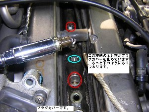 プラグを外している所です。 プラグキャップは2つで1つの台座にくっついていますので10mmで2つネジを外せば簡単に2つ換えられます。(私はわざわざ1つづつ外そうとしてました・・・。汗) プラグを新しいものに換える前に、パーツクリーナーでキレイにしたほうがリフレッシュ感は倍増します(笑) 燃焼室に落としてしまえば問題ないので思いっきり吹いちゃいます! |