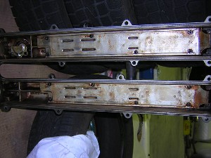 | ヘッドカバーを掃除したあとです。これは灯油で洗ってワイヤーブラシでちょっとこすって洗います。かなり汚かったです。 |