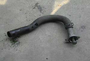 サーモスタットを取り外しました。 簡単そうに見えるけど、ここまで来るのに結構苦労しました。 かなり手を奥までのばさないときついです。 |