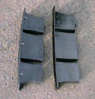 下側がTOP SECRET製ターボAダクトです。 ちなみに上側は本物のターボAダクトです。大きさはほとんど同じです。横幅が異なって見えるのは前後に置いてあるからですよ〜。 |