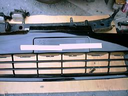 ターボAダクトを取り付けるための穴を開けるために目印をつけました。ナンバープレートが付いていた窪みよりも5cm以上も左右に長いです。 縦は2cmくらい長いくらいでした。これはちょっと記憶があいまいです。(^_^;) |