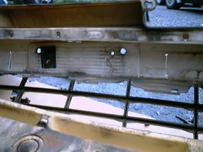 取付完了後です。これは裏側から見たところです。 おいらはレインホースの切断面が見えるのがどうしても嫌だったので、アルミテープでキレイに被覆してしまいました。 しかし、取り付ける時にバンパーを強く押してしまったので、ちょっとシワになってしまいました。(ーー;) |