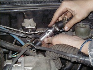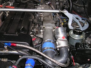 今度はエンジン本体側のヒーターホースにねじ込みます。 こっち側は手が届きにくいのとホースの硬化度合いが更にひどいのでもっとツライです。(^_^;) あ、それから、バイパスアダプターの側面にあるバイパスホース取付穴の向きをちゃんと考えながらねじ込んでください。それとホースバンドも先に入れてくださいね!入れなおしとかになった場合、額からあぶら汗が出てくることでしょう(笑)。 |